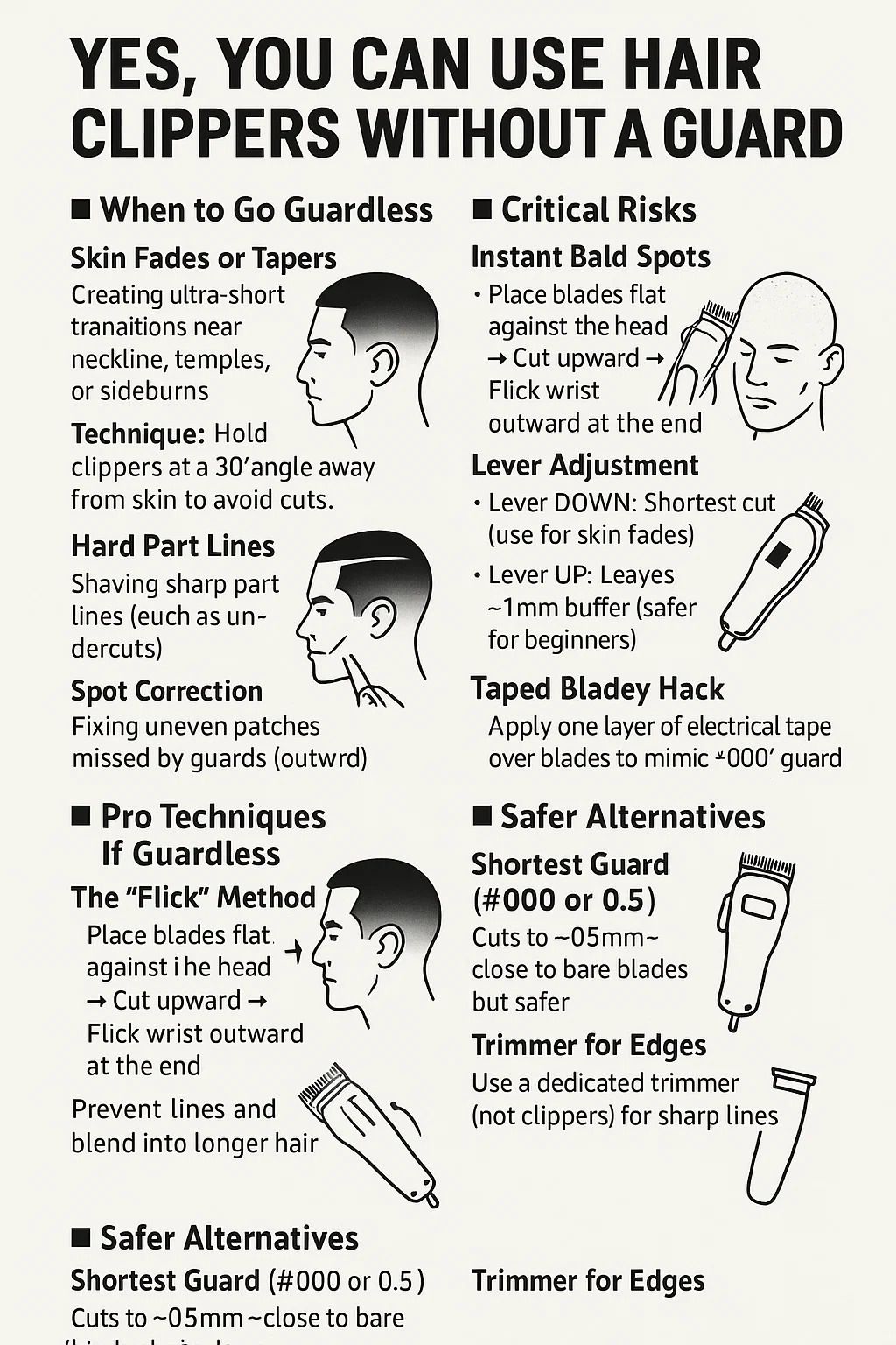Yes, you can use hair clippers without a guard, but it requires caution and specific techniques. Here's what you need to know: