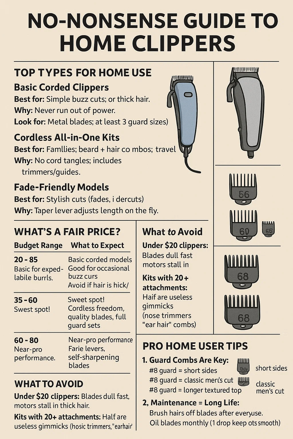 For home haircuts, you want hair clippers that balance ease of use, reliability, and value. Here's a no-nonsense guide: